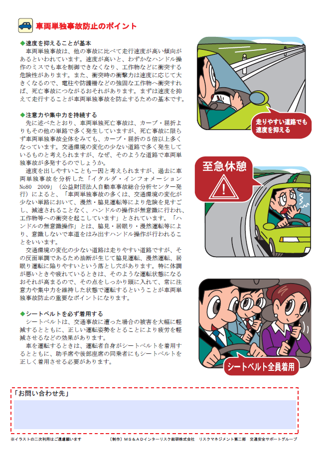 発生原因の一つは資料にもあるようにわき見・居眠り・漫然運転など「注意力や集中力の低下」かと思います。