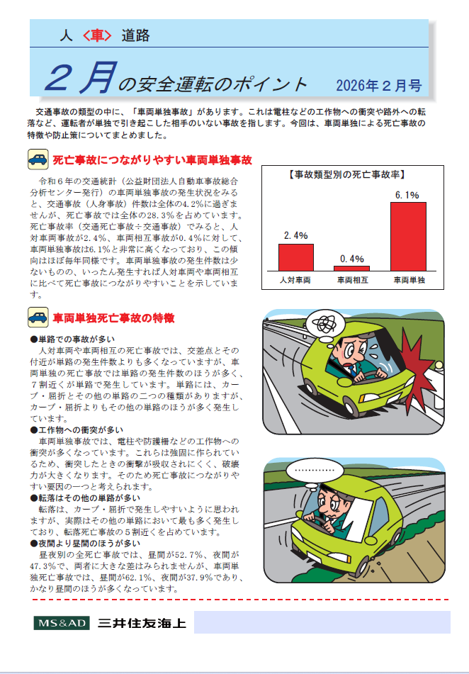 2026年2月の安全運転のポイントは「車両単独事故」です。