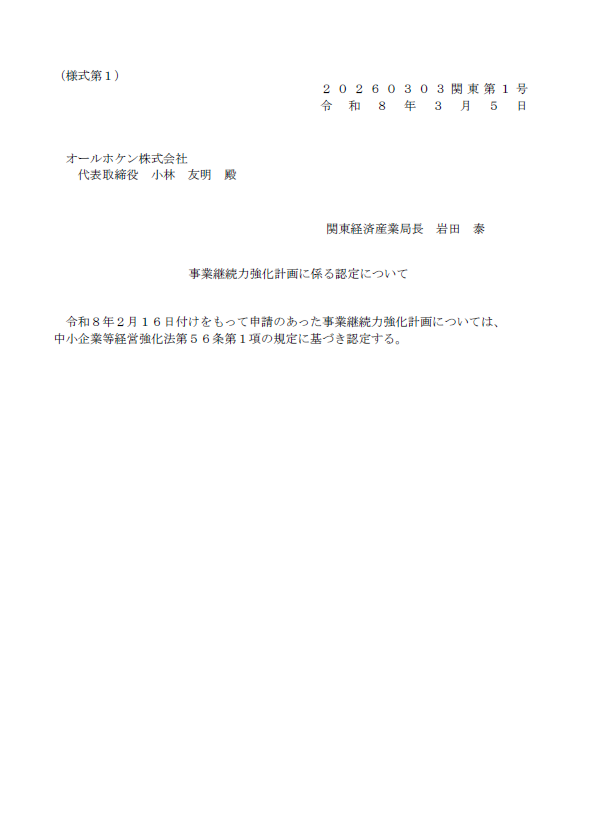 事業継続力強化計画 認定取得取組は多くの保険会社で行っていますし、取得済みの保険代理店も多いです。